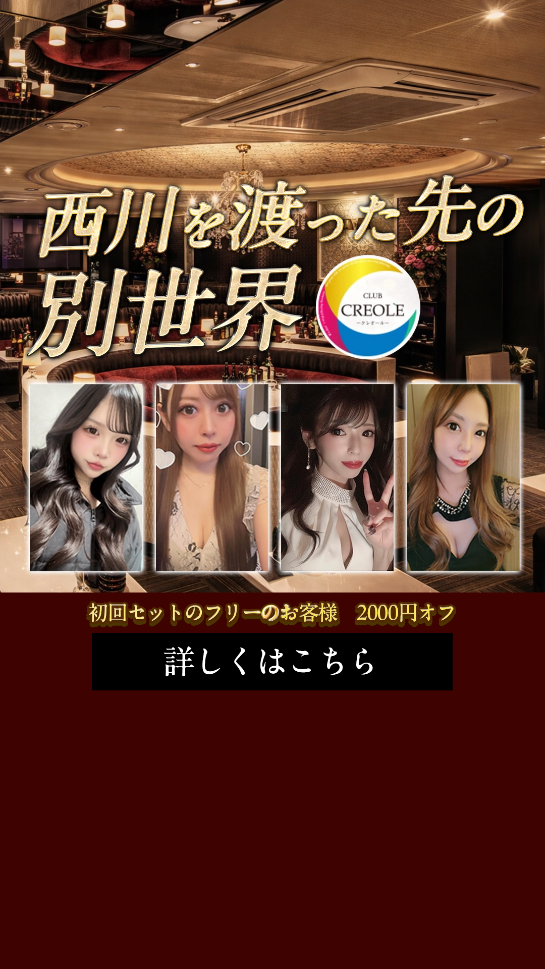 CLUB CREOLE は 1set 50分・飲み放題の明朗会計。20時台は 6,000円、21時以降は 7,000円でご利用いただけます。